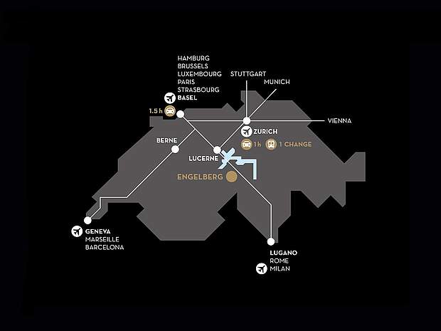 By car, take the A2 (Basel - Gotthard) to Stans Süd, then take the main road 20 km to Engelberg. Engelberg is 30 minutes from Lucerne, 1 hour from Zurich and 1 hour and 15 minutes from Basel. Parking is available for a fee.